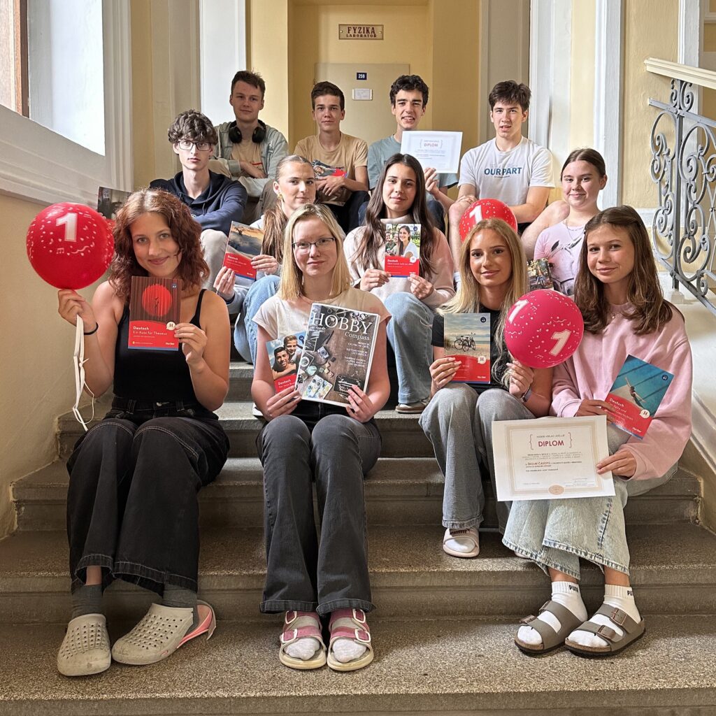 Krásného úspěchu dosáhla skupina němčinářů sexty A a sexty B. Se svým školním časopisem zvítězili v celostátní projektové soutěži, kterou vyhlásilo nakladatelství Hueber. Vítěze odměnilo zábavnou i napínavou četbou v německém jazyce.