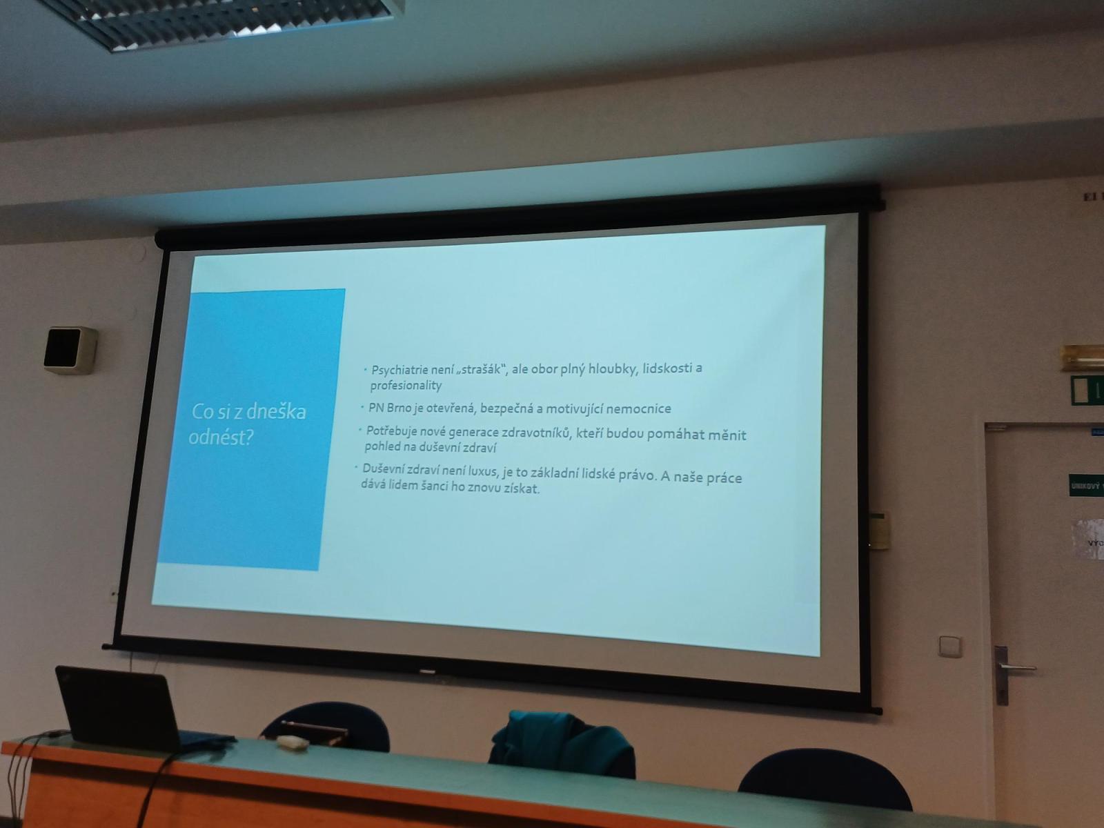 Výsledkem byl cenný pohled do zákulisí psychiatrické péče a inspirace pro možnou zdravotnickou dráhu studentů se zájmem o tento obor.