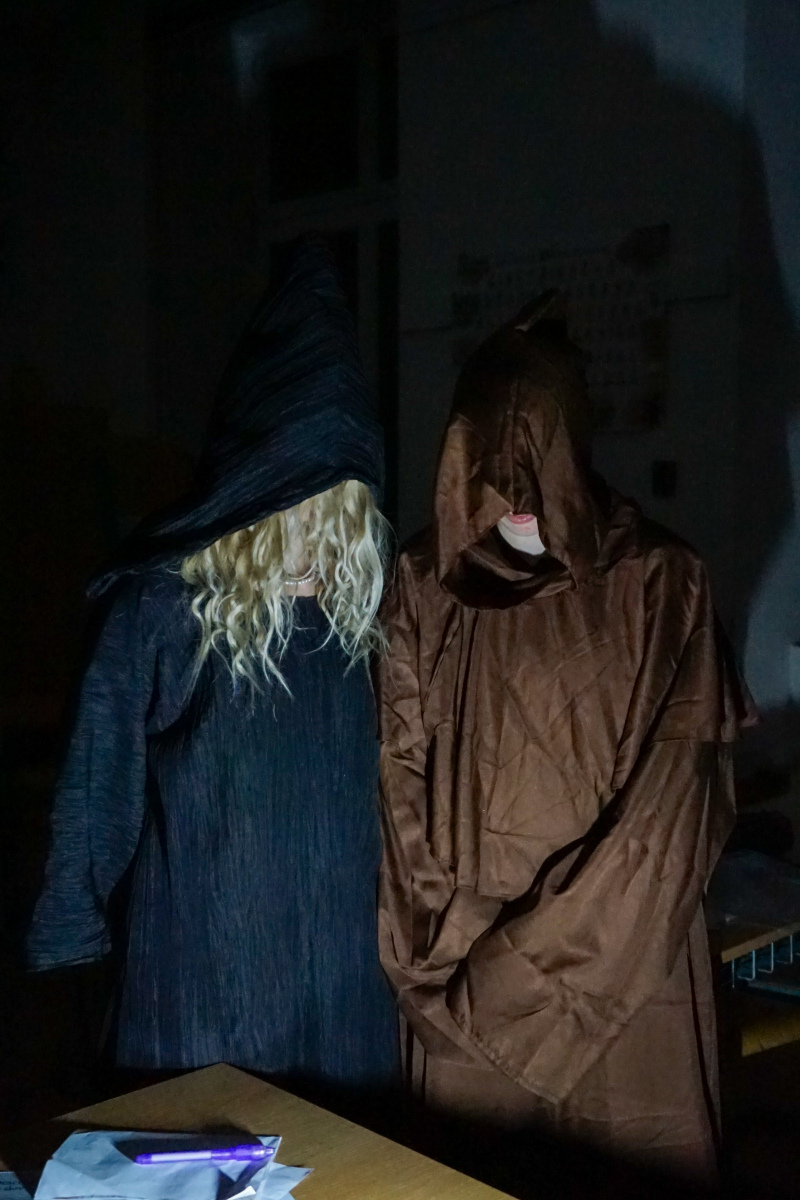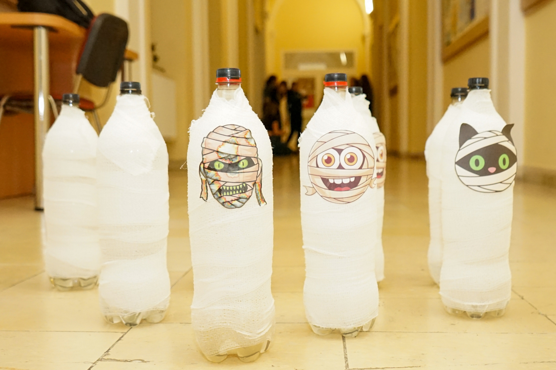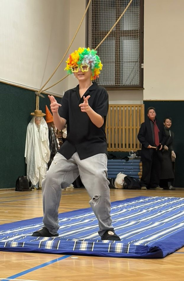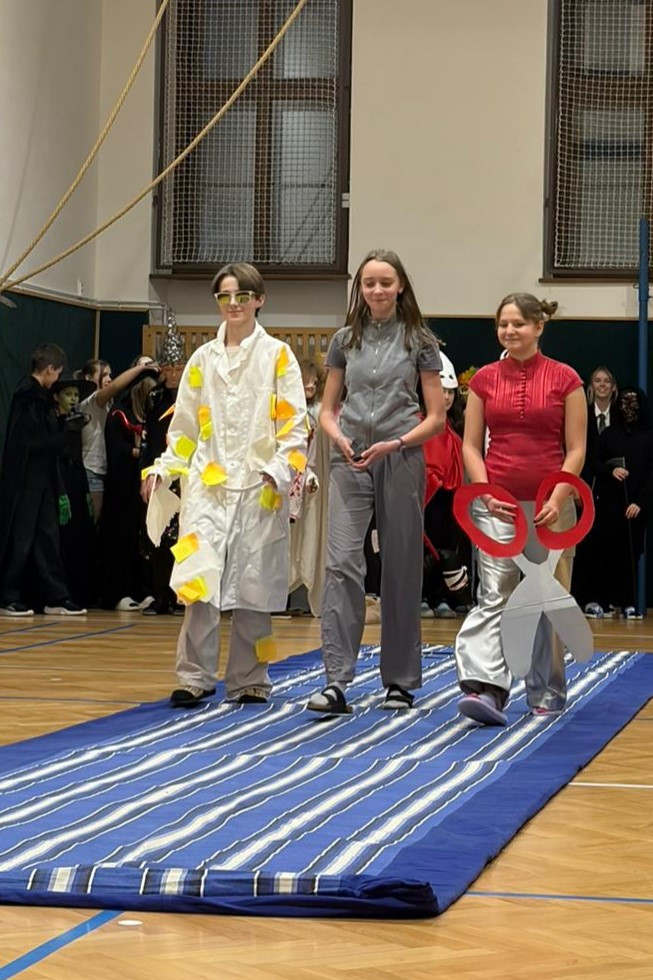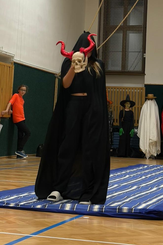 Netradiční podzimní akci připravili naši dofáci se svými vedoucími pro žáky obou sekund. Po vyučování nespěchali domů, ale zůstali ve škole, aby si užili pořádnou halloweenskou párty. Odpoledne žáci soutěžili na zábavných stanovištích, vyhlásili jsme nejlepší masky a po večeři přišel čas na hlavní bod programu: stezku odvahy potemnělou školní budovou. Sekundáni se po projití Mlžnou branou dostali do světa elfů, trpaslíků, nymf, skřetů a draků. Museli najít jejich příbytky a plnit úkoly, při nichž si lámali hlavu a protahovali tělo. Všichni nakonec našli šest drahokamů a rozsvítili Sluneční kámen. Zážitky z dobrodružné cesty se ze spacáků ozývaly ještě dlouho do noci.