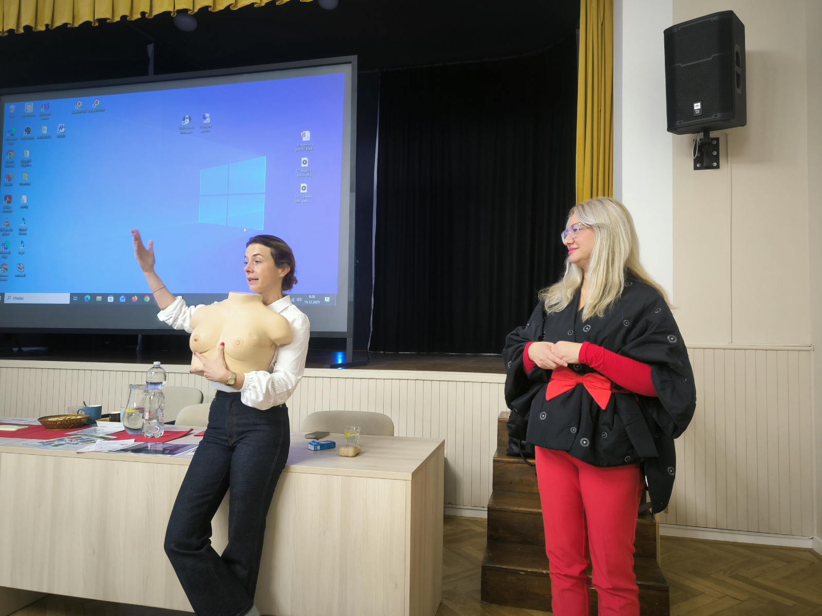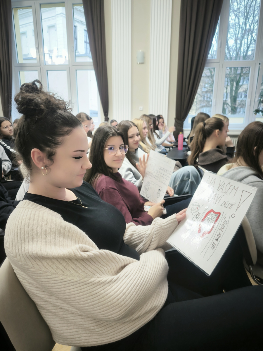 Krásnou inspirativní přednášku si v předvánočním týdnu vyslechli všichni studenti zdravotnického oboru. Nejen že zazněla spousta informací, statistik i novinek z tohoto oboru, ale žáci si vše mohli vše i vyzkoušet a osahat, a to někdy doslova „na vlastní kůži“. Svůj vzácný čas si na nás udělaly odbornice na prevenci nádorového onemocnění z Masarykova onkologického ústavu v Brně paní Petra Absolonová a Iva Hrnčíříková.