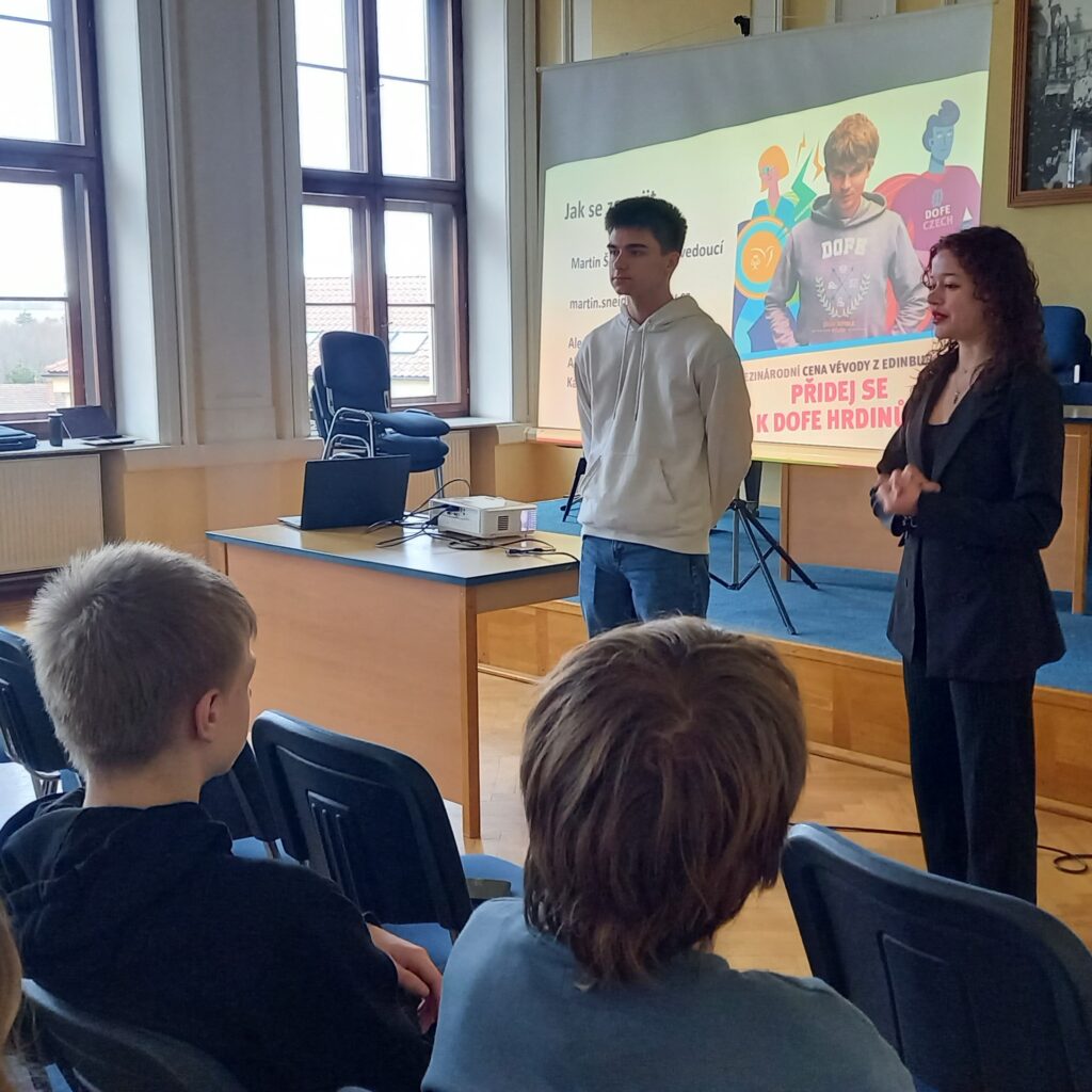Žáci kvart a 1. ročníků gymnázia i všech oborů střední odborné školy se zúčastnili přednášky o Mezinárodní ceně vévody z Edinburghu – The Duke of Edinburgh’s Award. Své osobní zkušenosti sdílela studentka brněnského gymnázia Ester Yildizová a naši úspěšní dofáci Monika Kusalová a Hynek Coufal z 3.B.
